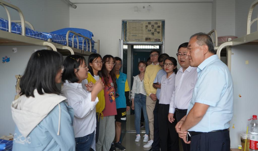 党委书记朱伟,党委副书记程胜利,学生工作办公室负责人何韶华、学生工作办公室辅导员艾萨·阿尤普、姚硕、孙文元,班主任助理李炜、杨宝华走访看望了2020级部分新生宿舍新生,为即将开始新学期生活的2020级新同学送去“第一声”问候和最诚挚的关怀。
