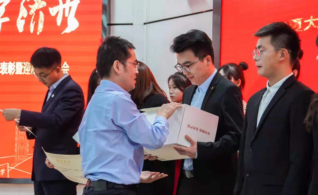 张逸、仇娟东分别为本科生和研究生获奖团体及个人颁奖,获奖代表上台领奖。会场上响起了热烈的掌声。