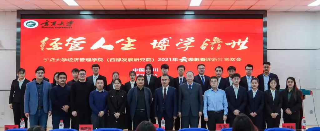 党委书记李胜刚、院长杨国涛、学院党委副书记马建宏、西部发展研究院副院长马军、学院副院长张逸、学院副院长仇娟东,各办公室、系、支部负责人,教师代表以及部分本科生、学术型研究生、会计专硕研究生、MBA应邀参加本次云表彰暨迎新年联欢会,本次会议由马建宏主持。