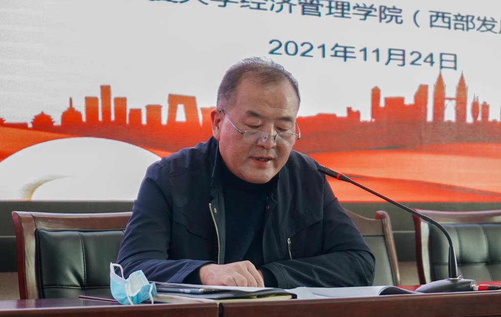 党委书记朱伟,院长杨国涛,西部发展研究院副院长马军,党委副书记程胜利、马建宏,副院长张逸、仇娟东及全体教职工参加会议。会议由朱伟主持。