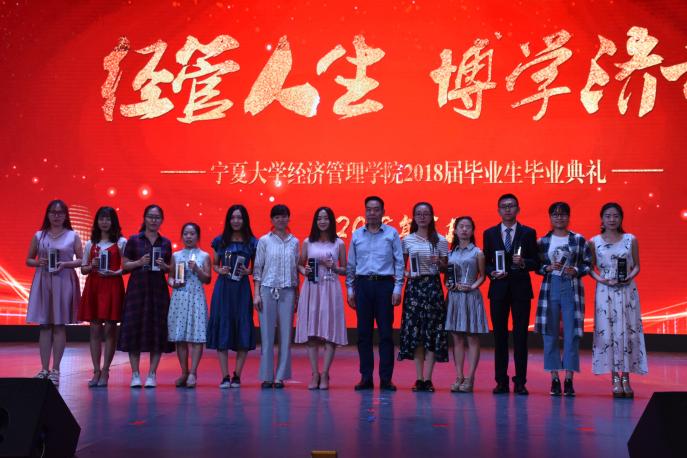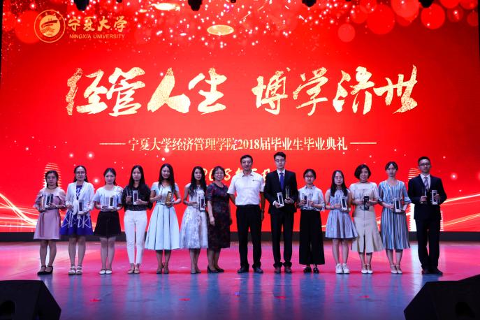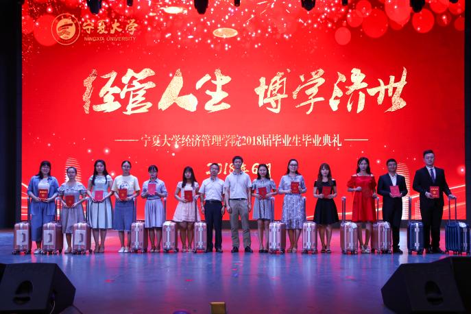 2018年,学院466名本科毕业生和115名研究生参加毕业典礼,另外还专门邀请196名学院辅修学士学位毕业生参加毕业典礼,增加了毕业生走红毯环节;杰出校友、1992届企业管理专业毕业生、宁夏蓝平广告策划有限公司董事长王蓝平先生为毕业生做演讲;自治区教学名师袁红教授为毕业生致辞,这些都是富有仪式感的体现。