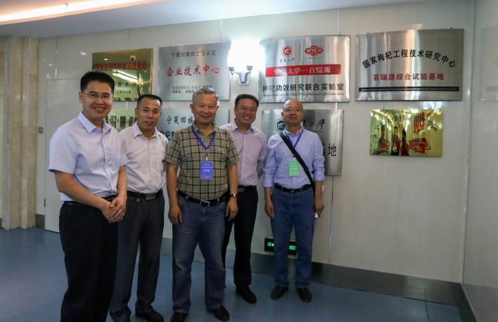 党委书记张桓、院长杨国涛、教师代表马生元、评估工作小组成员严津和教务处李志涛老师,百瑞源枸杞股份有限公司常务副总经理姚卫鹤全程陪同讲解。