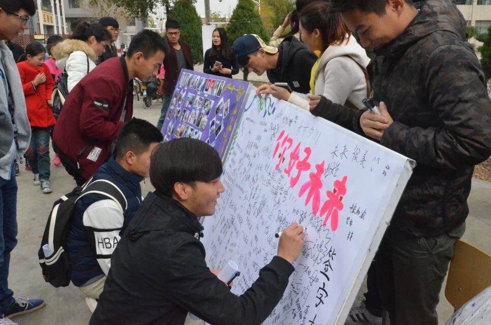 本次活动以“回忆青涩的当初,拥抱五彩的现在”为主题,分别开展了“再见,我的过去”照片展示活动和“你好,我的未来”展板签名活动。照片墙上,展出了一组组过去和现在的对比照片,或是人物照、或是校园风景照,散发出青春洋溢的气息,勾起了大家对过去的美好回忆和对未来的无限憧憬。签名展板上挤满了大家个性四溢的签名,以及一句句勉励自己的话语。现场气氛十分活跃,同学们兴致勃勃的观看着照片墙上的小伙伴大学四年的变化,积极在展板上签名写寄语。现场的抽奖活动将气氛推向了高潮。最后,活动在大家对未来的憧憬中圆满结束,这份美好定格在获奖学生的合影里。