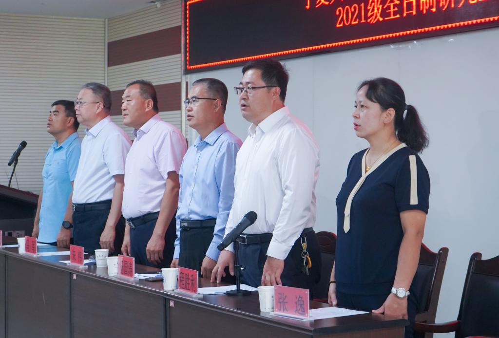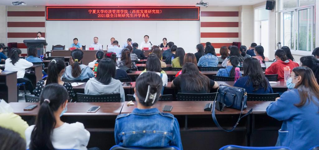 西部发展研究院副院长马军、学院党委副书记程胜利、马建宏、学院副院长冯蛟、张逸、学院学生工作办公室主任黄旭兴、全日制研究生辅导员、研究生秘书杨波、郭飞、学院研究生分会副秘书长艾萨•阿尤普以及2021级80名全日制研究生新生参加本次典礼。典礼由程胜利主持。