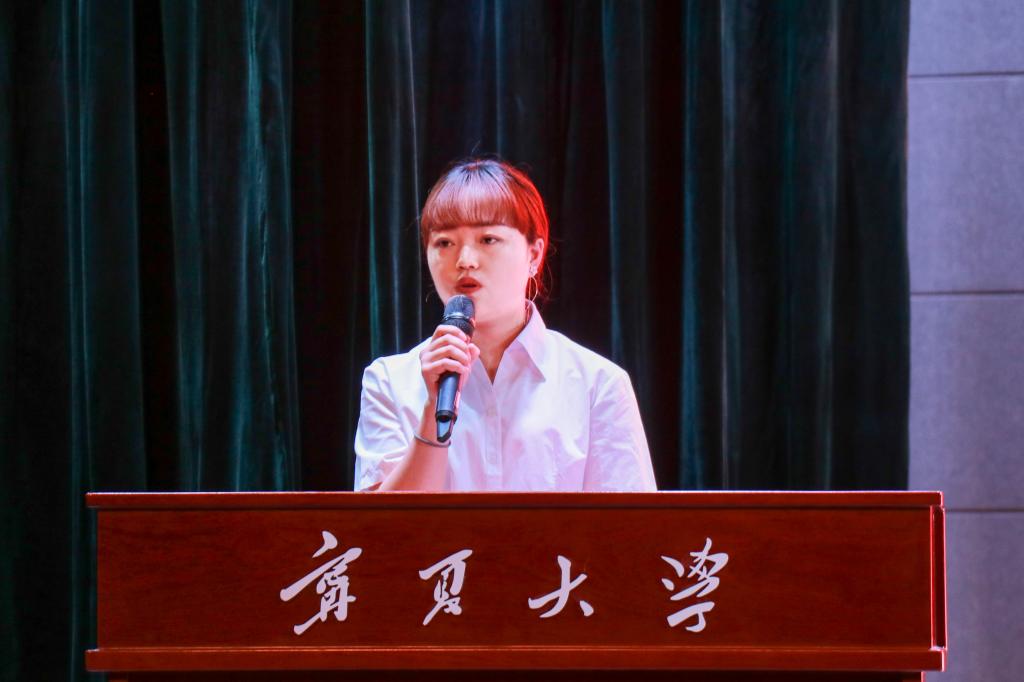 校友代表、2020届工商管理专业本科毕业生樊桂君作为校友代表发言。她回顾了大学四年的点点滴滴,美丽的金波湖、沙枣树旁的拐角楼、与奋飞女神相伴的凌云广场都是他心中永远的牵绊。她用自身的求职经历,为毕业生们提出了努力学习好专业知识、注重实践、做好自己的职业规划、坚持学习、坚持读书的建议。对于母校,她心怀热爱,对于恩师,她心存感激。她希望所有毕业生不管走到哪里,不管在什么岗位工作,都要继续填好人生的履历表,为母校争辉添彩。不管在哪里,一定要牢记校训,做睿智而富有激情、胸怀大志而脚踏实地、富有责任并勇挑重担的人!