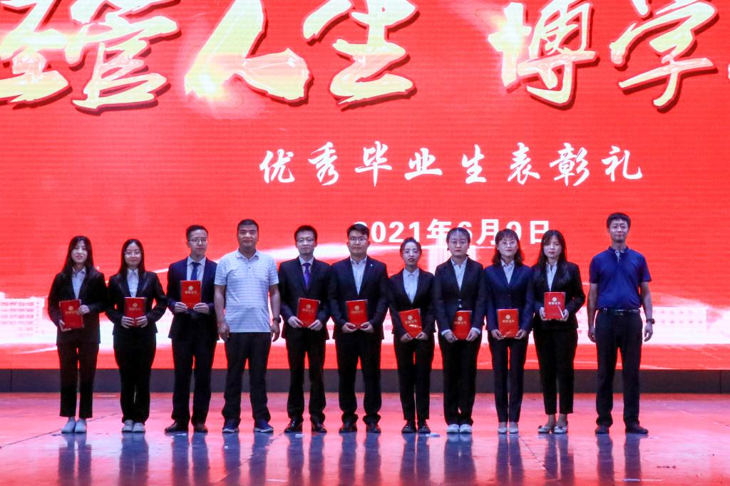 不忘初心,不负梦想;青春不朽,芳华永驻。在2021届毕业生中,涌现出了一大批优秀学子,他们在各类大赛和校园文化活动中斩获颇丰;在求学深造的道路上破浪前行。他们展示了2021届优秀毕业生的风采,发挥了先进典范的榜样力量。在优秀毕业生表彰礼上,马军宣读了2021届毕业生表彰决定后,马建宏、刘涛为受表彰本科生代表康梅、蓝双、孙小宁、刘明皇、罗忠明、马和霞、王天赐、罗丽丽、金向琴颁奖。张逸、虎兴武为研究生代表赵威、马丽娅、白小龙、王梓钰、刘书润、孙玥、丁丽、何佳、刘初脱颁奖。