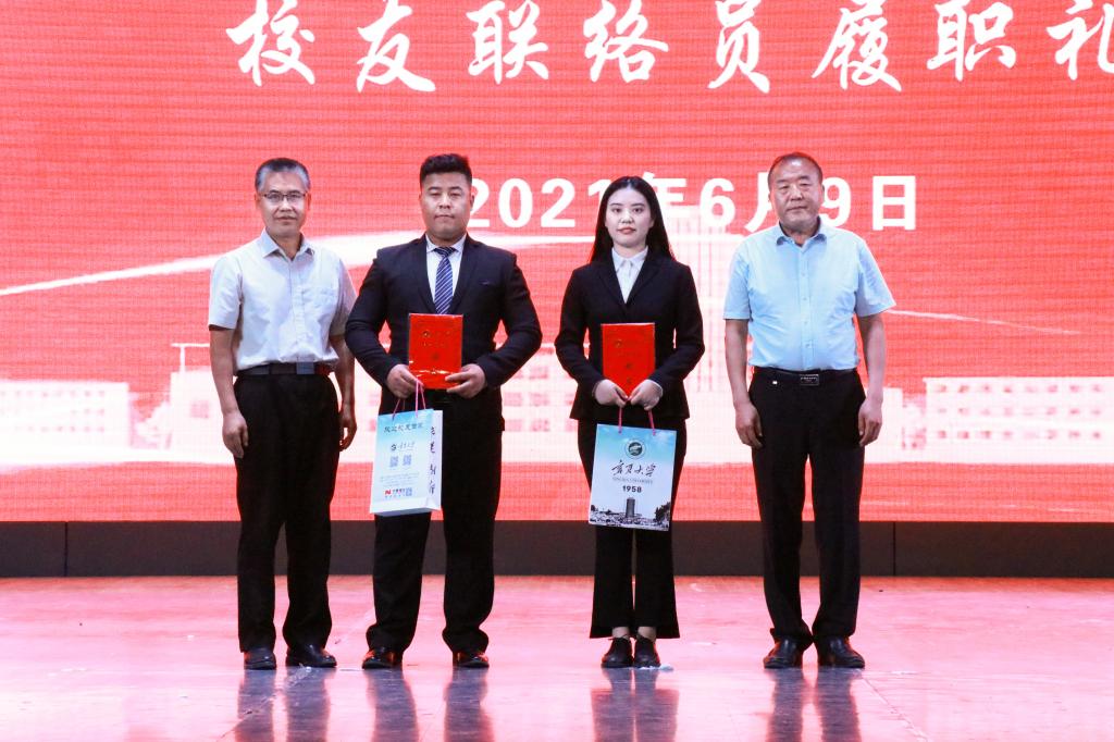 鹏北海,凤朝阳,又携书剑路迢迢。在保研考研毕业生升学礼上,马建宏宣读了2021届升学学生名单后,马军、付森为2021届升学学生代表刘朔宇、田虎、倪雪、刘彦麟、张宽元、马雯婧、马灵琴、翟玥、马兴梅佩戴绶带。在校友联络员履职礼上,张逸宣读了2021届校友联络员学生名单,朱伟、杨国涛为2021届本科毕业生代表罗龙,研究生代表孙玥赠送纪念品。