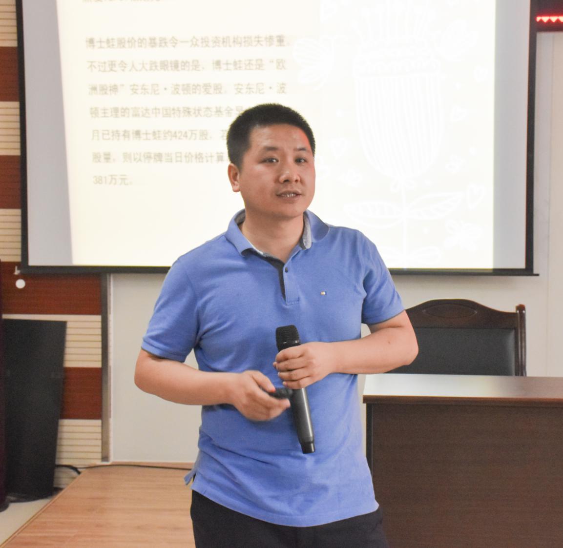 会议伊始,杨国涛依次对七位专家做了简要介绍,并对他们的到来表示热烈欢迎。王彦超首先做了题为“从现象到本质”的报告,期间,他用“蛇吞象”来形容“三元吞并三鹿”的案例,勾起了同学们浓厚的兴趣。
