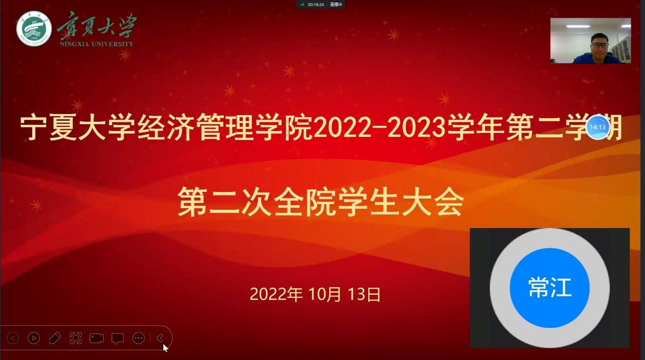 2022—2023学年第二学期第二次全院学生大会和团学骨干会议。学院党委书记崔明堂,学院党委副书记常江,学生工作办公室负责人艾萨·阿尤普,研究生辅导员李杨、曹志伟,本科生辅导员姚硕、孙文元以及学院全体本科生、研究生参加会议。