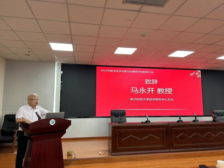 电子科技大学经济研究中心主任马永开教授首先致辞。他介绍了来自校外的与会嘉宾,并向与会学者介绍了本次会议的举办目的与意义,以及电子科技大学经济与管理学院的发展历程。他表示,2023年是连续举办数字经济运营与治理学术创新研讨会的第二年,会议旨在为从事经济、管理科学的广大学者提供交流数字经济运营与治理主题科研成果的开放互动平台,了解学术发展趋势,拓展研究思路,期待各位专家学者能在本次会议交流真知灼见。