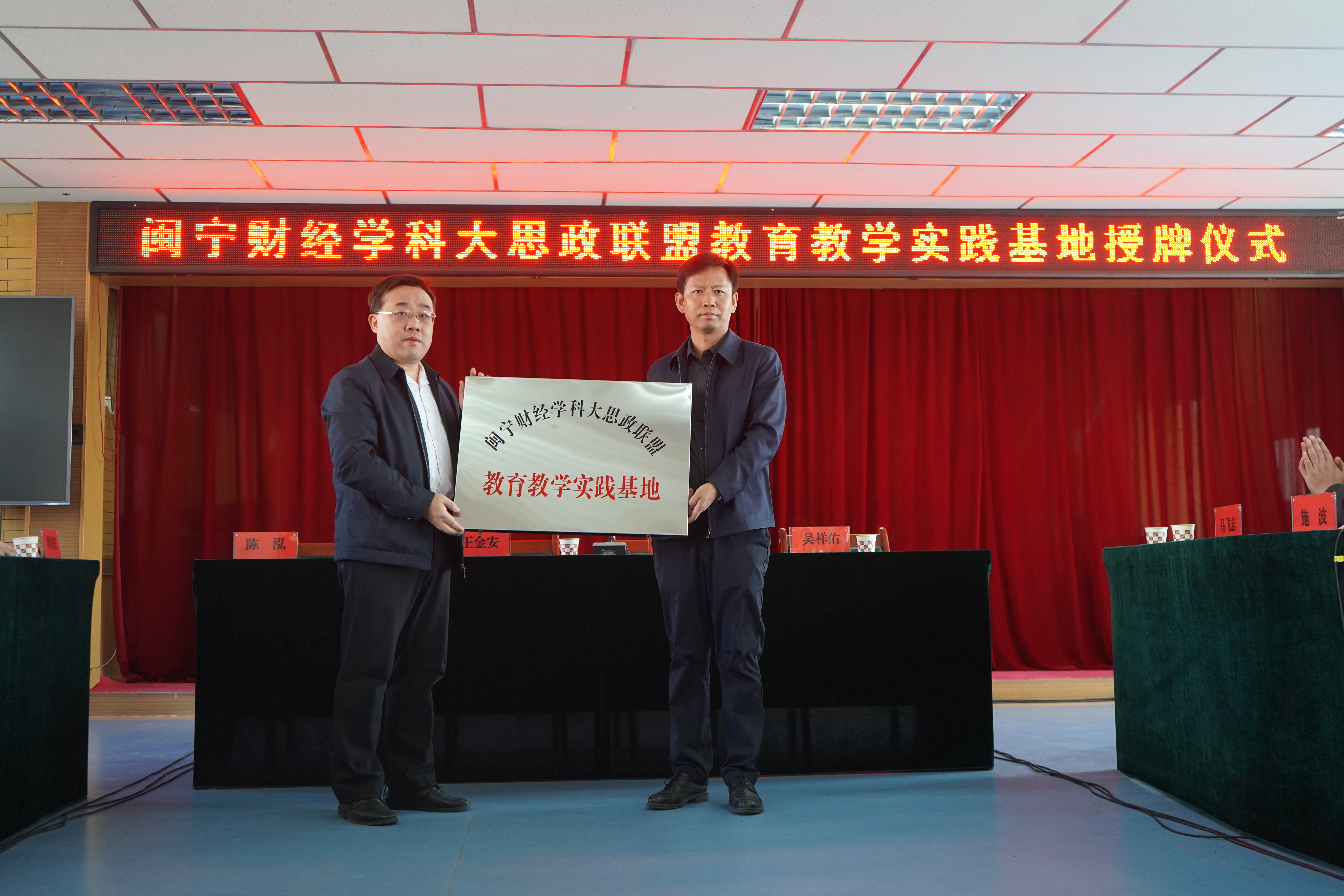 院长杨国涛对永宁县、闽宁镇领导的热情接待表示感谢,说明了“闽宁财经学科大思政联盟”成立的背景与重要意义,表达了闽宁镇政府支持教育教学基地建设的期望。福建农林大学经济与管理学院郑海荣教授、集美大学学院陈蕾教授、闽江学院新华都商学院党委常务副书记张东昱分别发言,重点表态要务实工作、推动联盟产出高质量成果。最后,厦门大学经济学院院长、王亚南经济研究院院长周颖刚教授与永宁县委常委、闽宁镇党委书记周德强为“闽宁财经学科大思政联盟教育教学实践基地”进行授牌。授牌仪式由欧美av
