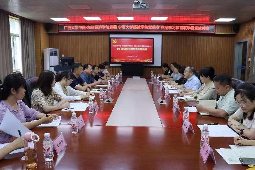 党总支党纪学习教育联学暨党建共建活动在广西大学MBA大楼314会议室顺利开展,广西大学中国-东盟经济学院/经济学院/中国-东盟金融合作学院党委常务副书记罗诚、欧美av