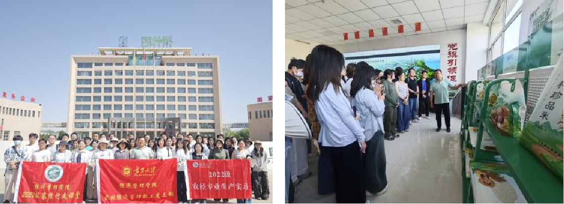 第一站,师生们来到了宁夏塞外香食品有限公司。宁夏塞外香食品有限公司是一家集优质粮食种植、研发、加工、销售为一体的国家农业产业化重点龙头企业。源于对优质食品产业链的品质坚持,塞外香开创了“企业+科研+基地+农户”的经营模式,并始终将科技创新联盟作为品牌提升的动力源泉。师生们在公司负责人的带领下参观了塞外香品牌的各类产品、自动化大米加工生产线以及质检室。通过观看影音视频、参观生产车间、品尝营养米汁等活动,零距离感悟“从田间到餐桌”科技赋能农业升级每一个环节所凝聚的农人智慧。