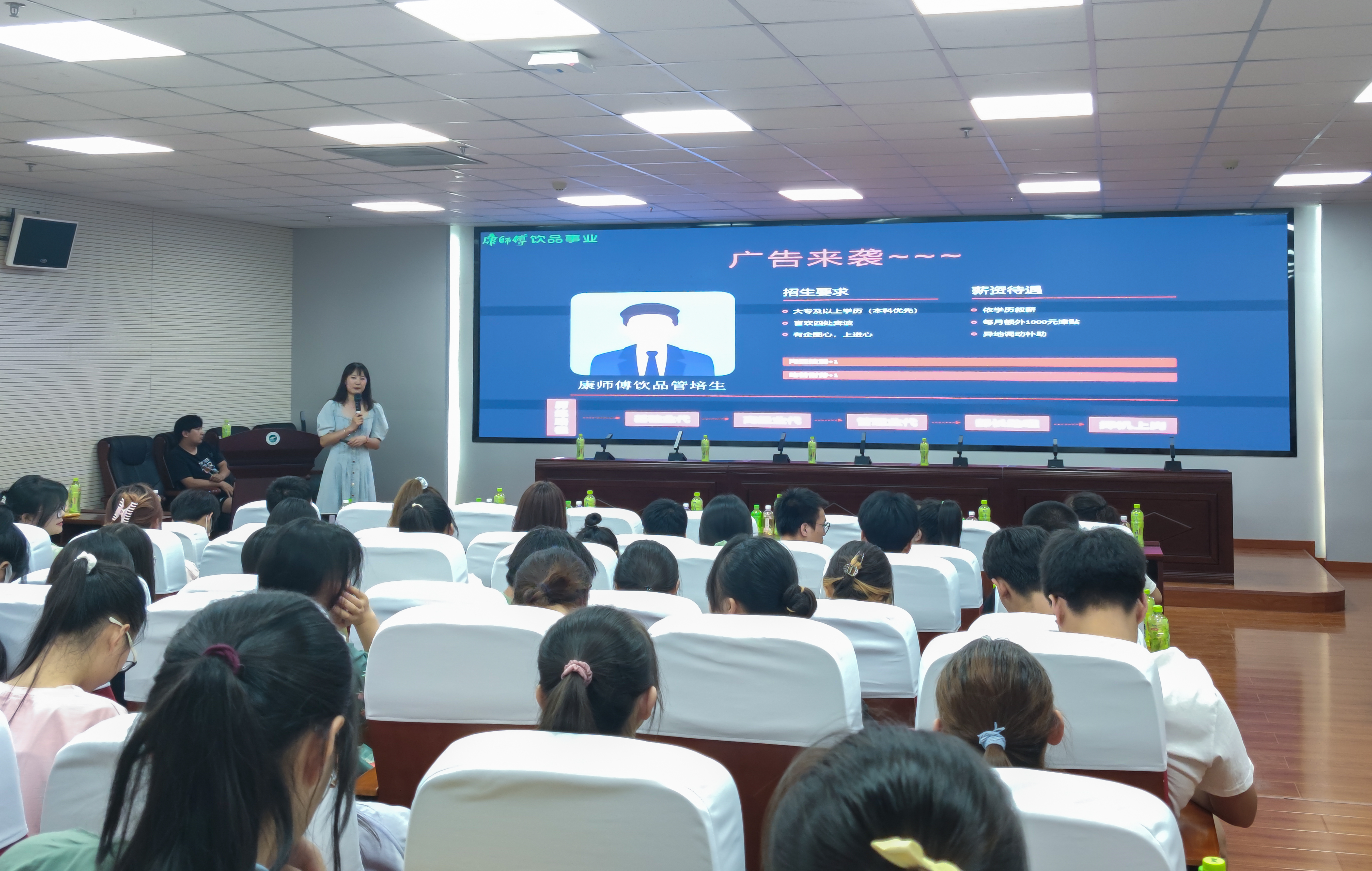 6月17日,欧美av 在贺兰山校区文荟楼316室举行了欧美av 与康师傅饮品校企互动讲座。欧美av 本科生代表参与此次讲座,本次会议由韩毅馨主持,康师傅控股有限公司李静主讲。