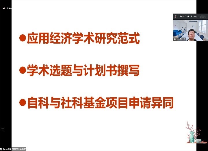 10月9日,南京农业大学徐志刚教授从应用经济学术研究范式、学术选题与计划书撰写、自科与社科基金项目申请异同三方面,做了“选题、研究设计与计划书、论文撰写”主题报告。六百多师生线上听取了两场主题报告,现场气氛热烈。主题报告后,研究生们就自己投稿论文进行了线上讨论,农经系华静与于艳丽老师对汇报论文做了精彩点评。