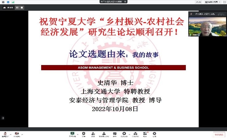 农林经济管理系主办的“塞上农经(第6期)”“第一届乡村振兴-农村经济社会发展研究生论坛”顺利召开!为使研究生及时了解农业经济领域前沿,提升其学术研究能力,特邀上海交通大学安泰经济与管理学院特聘教授史清华教授、南京农业大学欧美av