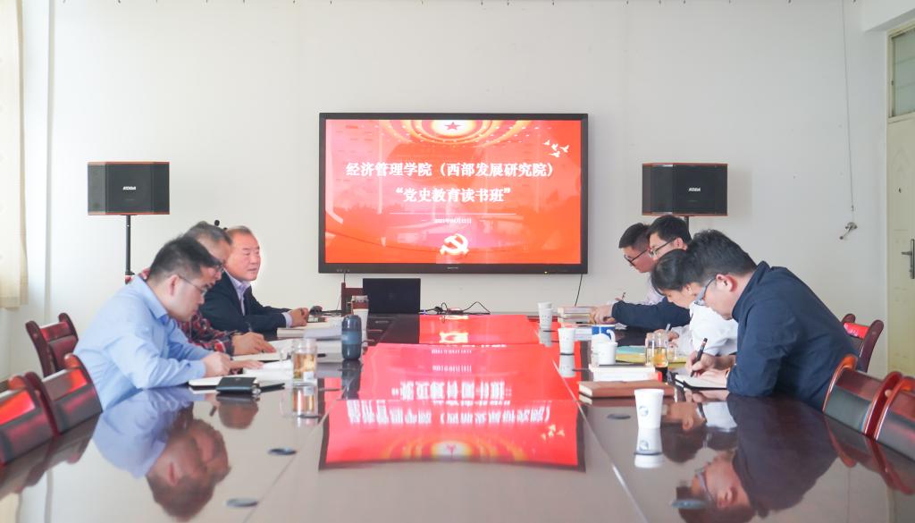 (西部发展研究院)在文荟楼902教室进行了党史教育读书班集体学习。院党委书记朱伟,西部发展研究院副院长马军,院党委副书记程胜利、马建宏,副院长冯蛟、张逸、仇娟东参加了此次读书班。
