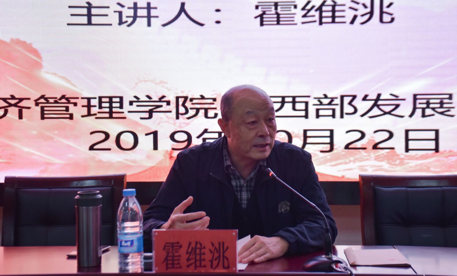 霍维洮首先为大家解释了文化的含义,并说到:“中国拥有悠久而持续、完整的民族文化。”他强调文化的核心是价值观念,而价值观念实际上是一种集体观念,具有普遍性。以历史时间为主线,霍维洮运用一些国内外史实,展现出了中国文化的持久弥新以及现代化进程中的波澜曲折。当谈到中国文化精神,霍维洮分享了家国情怀,“天下兴亡,匹夫有责”“天行健,君子以自强不息”三种精神,为当代大学生点亮信念的明灯。