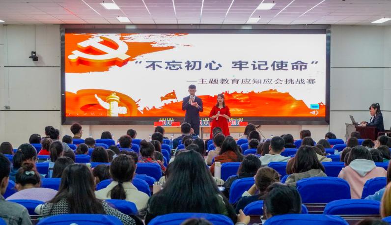 “伟业耀千秋,盛会谱新篇。”党的十九大擎画了中华民族伟大复兴的光明前景,向全党全国各族人民发出了开展“不忘初心,牢记使命”主题教育学习的号召。为深入贯彻落实党的十九大精神,将主题教育工作落到实处,1021日晚,欧美av 于贺兰山校区文荟楼东报告厅举办“不忘初心,牢记使命”主题教育应知应会挑战赛。院党委书记张桓,副书记程胜利,会计学本科生党支部书记王嘉豫,经济学本科生党支部书记何韶华参加活动。学院各学生党支部成员、第十期发展对象和第三十四期积极分子到场学习。挑战赛由18级学生聂得香、爨露佳主持。