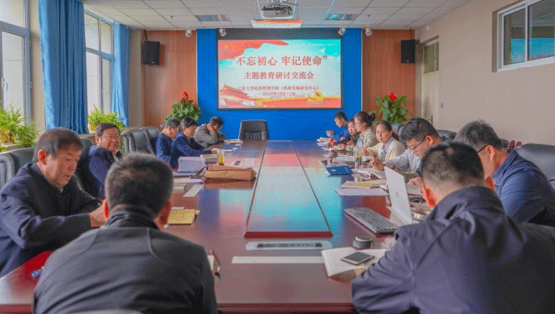 于贺兰山校区文荟楼904会议室召开“不忘初心,牢记使命”主题教育研讨交流会。本次会议由学院党委书记张桓主持。学院副处级以上领导干部,三办主任和各党支部书记参会。