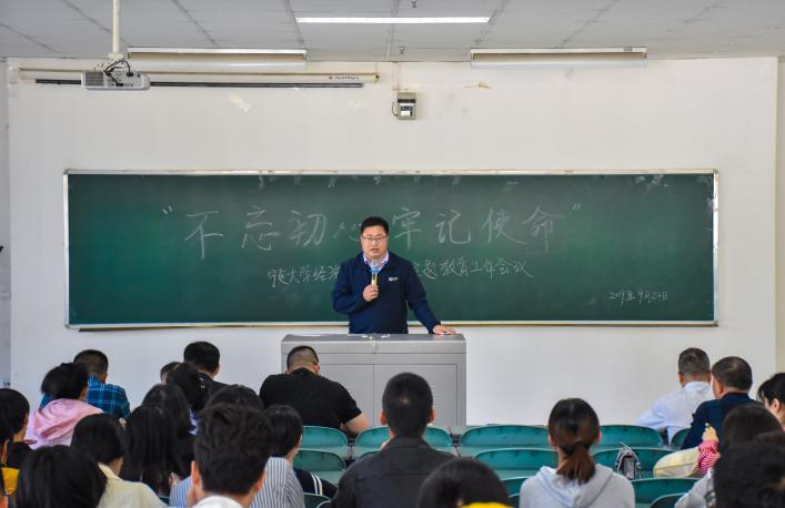 为认真学习贯彻习近平总书记在“不忘初心、牢记使命”主题教育工作会议上的重要讲话和重要指示批示精神,924日中午1255分,欧美av (西部发展研究中心)于贺兰山校区文荟楼130室召开了“不忘初心、牢记使命”主题教育工作会议。学院党委书记张桓,党委副书记程胜利,党委副书记李琦及学院全体教师党员、学生党员到场参加。会议由程胜利主持。