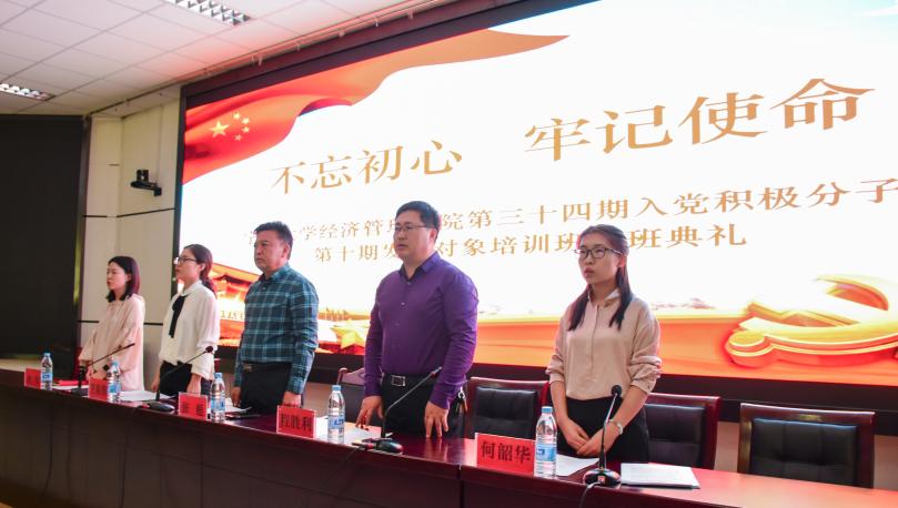 920日中午1220分,欧美av 分党校2019年秋季班开班典礼于贺兰山校区文荟楼东报告厅顺利召开。学院党委书记张桓,党委副书记程胜利,学生工作办公室负责人、会计学本科生党支部书记王嘉豫、工商管理本科生党支部书记姚硕参与本次会议,第三十四期入党积极分子暨第十期发展对象到场学习。典礼由何韶华主持。