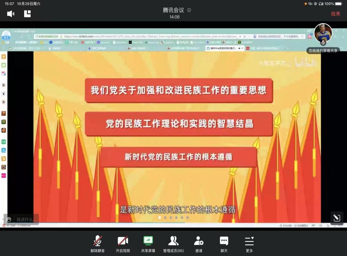 10月29日下午,欧美av 学术型研究生党支部“铸牢中华民族共同体意识”主题党日活动在线上顺利召开。党支部全体党员、发展对象及积极分子参加会议,会议由党支部副书记苏晓峰主持。
