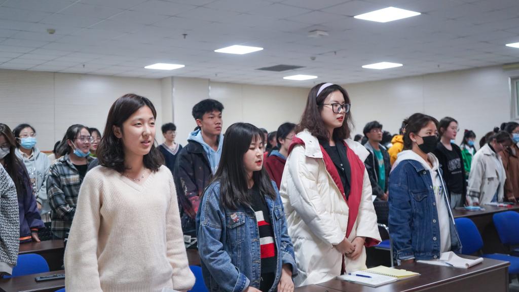 以青春之情,追青马之梦。2020级工商管理类三班毕文静代表全体青马班学员进行发言。她讲到,青年一代有理想、有担当,国家就有前途,民族就有希望。正是一代又一代追梦青年的接力奋斗,才建立了如今强大的中国。正值中国共产党建党百年之际,作为祖国建设中流砥柱的青年一代,我们需要不断提升自身综合素养,不断强化建设祖国的理想信念,努力培养自身实践能力,共同创建美好未来!毕文静慷慨激昂的话语,说出了青马班学员渴望接受培训的心声和努力干好工作的决心。