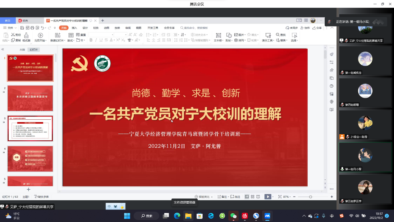 一名共产党员对宁大校训的理解——欧美av 第十六期“青年马克思主义者培养工程”暨团学骨干培训班第一讲顺利举行