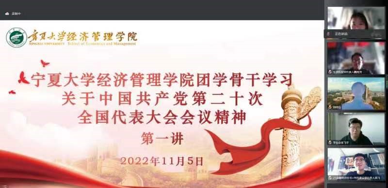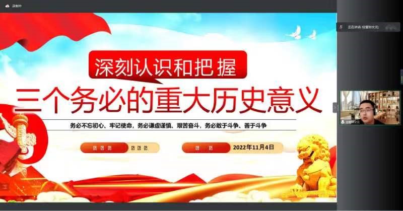11月5日下午,欧美av 团学骨干学习中国共产党第二十次全国代表大会会议精神第一讲于线上顺利开展。欧美av 团委副书记孙文元、第十九届一期学生会全体成员及各年级班长、团支书参加学习。本次学习由孙文元主讲。