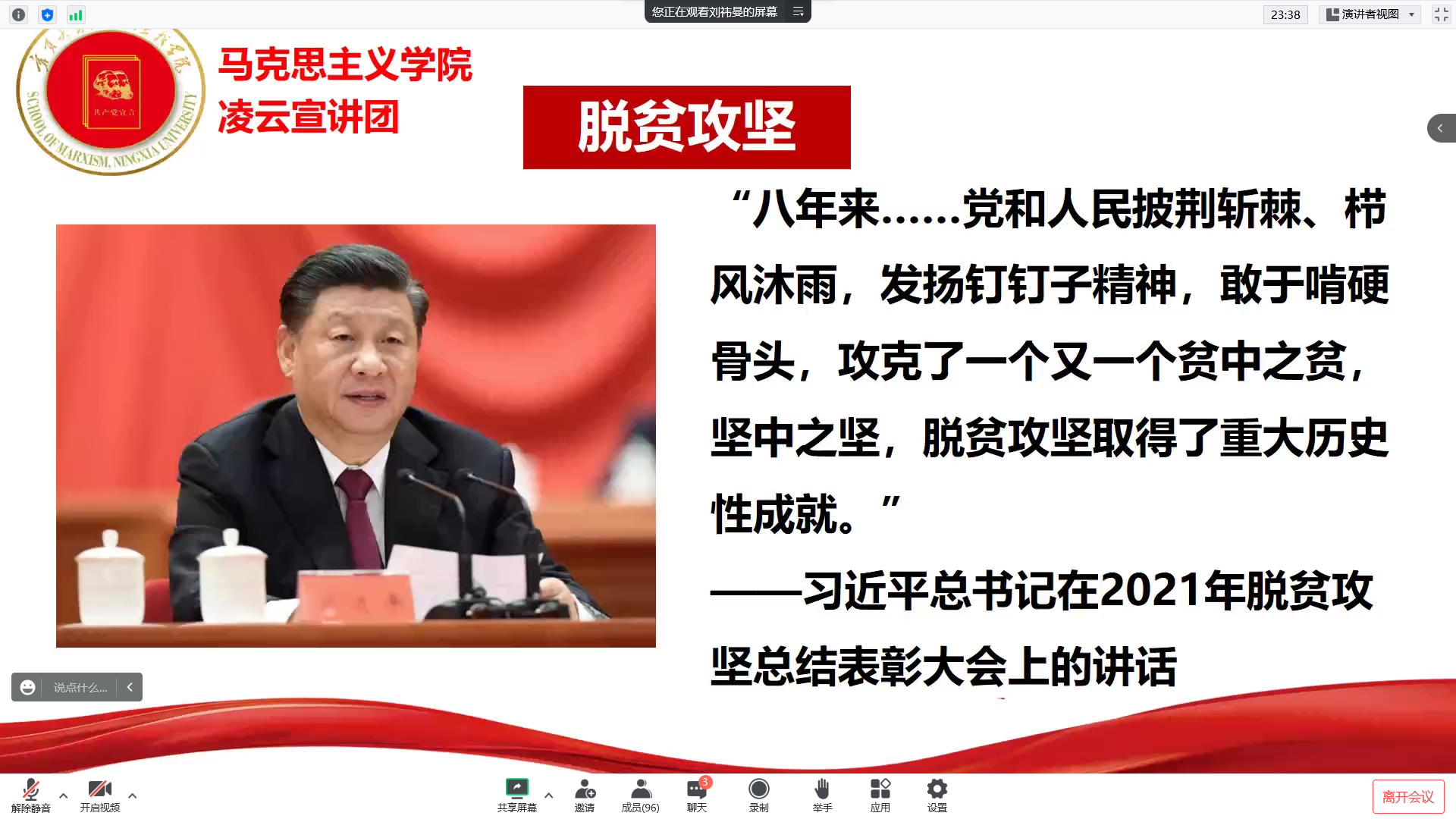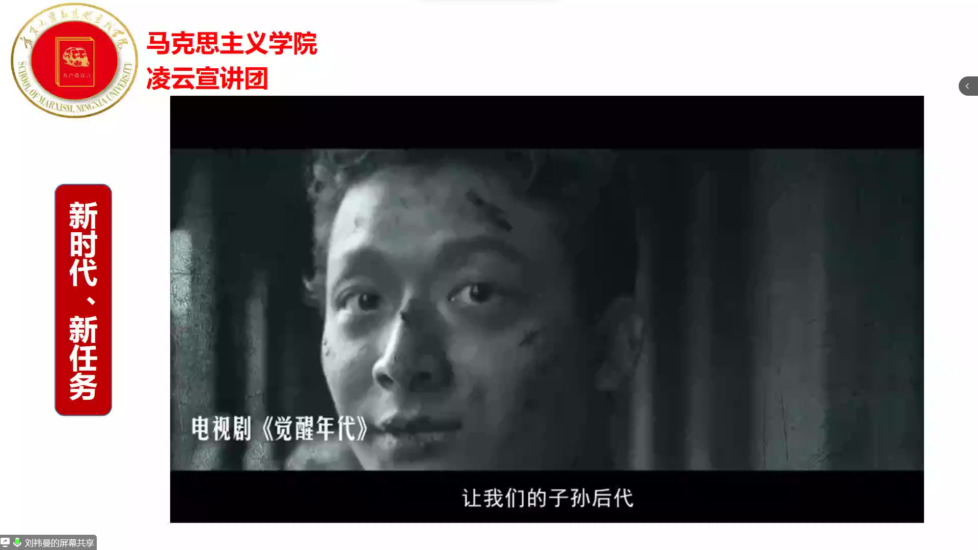11月18日,欧美av (西部发展研究院)第十六期“青年马克思主义者培养工程”暨团学骨干培训班第三讲于线上顺利举行。第十六期青马班成员参加本次培训。本次培训由欧美av 马克思主义学院凌云宣讲团成员刘成龙、沙宣、刘祎曼、马明明、潘薇主讲。