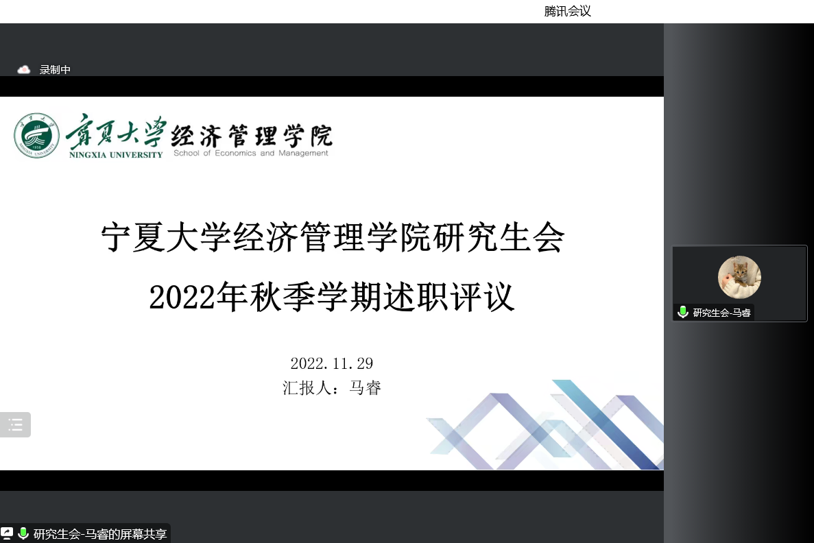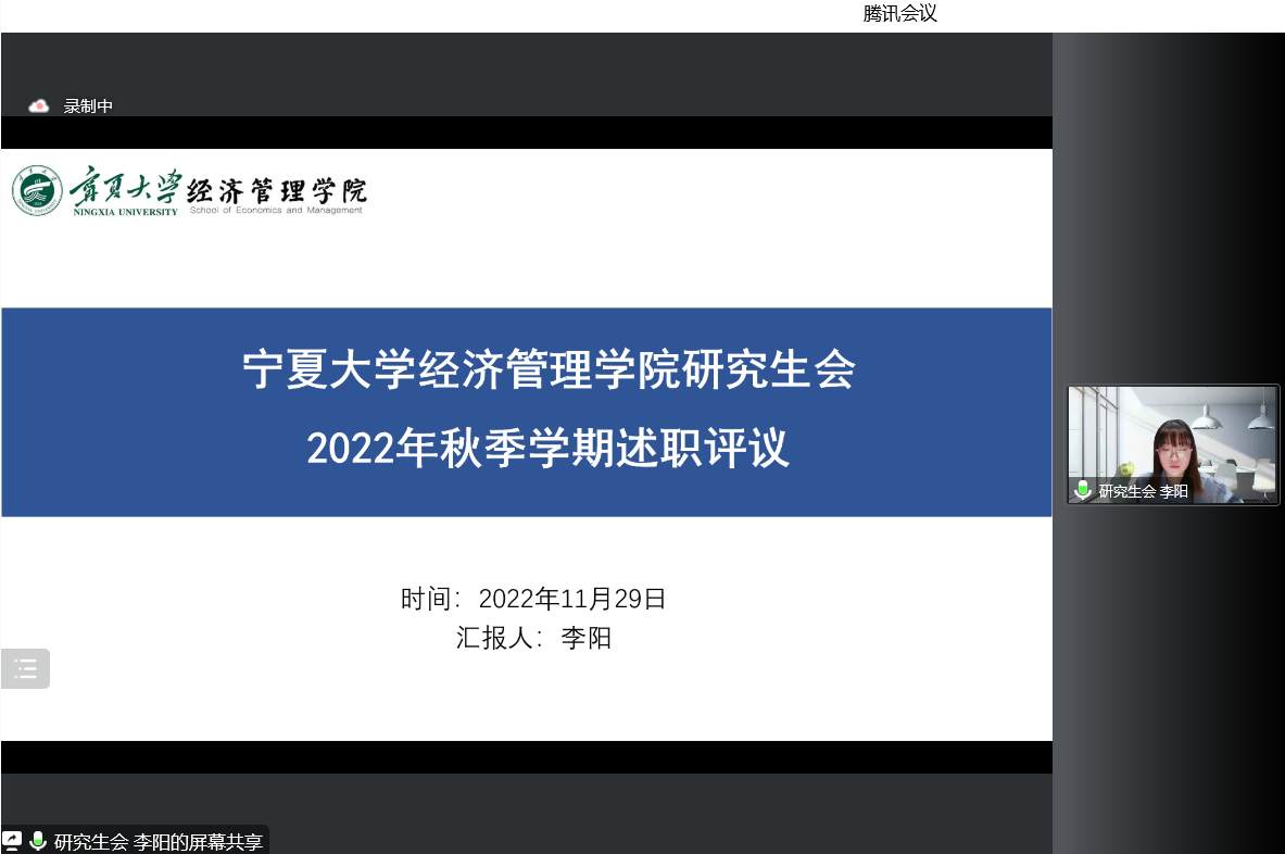 11月29日下午,欧美av (西部发展研究院)团委、学生会(研究生会)2022年秋季学期述职大会在线上顺利举行。欧美av (西部发展研究院)党委副书记常江、团委副书记孙文元、第十九届一期学生会全体成员和第二十一届研究生会全体成员参加会议。会议由马琴主持。