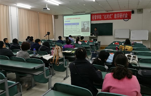 为推动欧美av 教师教学能力的提升,促进青年教师专业成长,在欧美av 教师教学发展中心的大力支持下,欧美av 于11月16日下午成功举办了“比对式”教学研讨会的第一期。本期教学研讨会的课程选定为《市场营销》和《宏观经济学》,授课教师分别为马晓云、张淑萍、张小盟和仇娟东,邀请冯蛟副院长、黄立军副院长、陆青山教授、袁红教授、赵振宇副教授等9位教师担任本期活动的专家评委,冯蛟副院长主持此次研讨会,全院教师积极观摩学习。